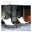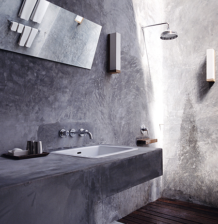 The large glass panes on two sides of the bedroom area emphasize the spacious 63 sqm polished concrete room. A sliding glass door opens up onto the private terrace overlooking the sea.