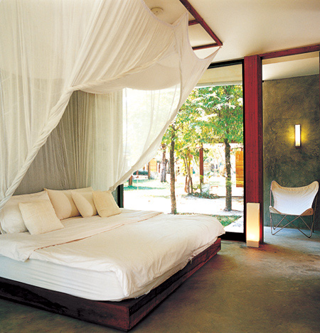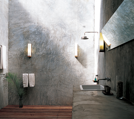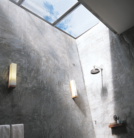 At 63 sqm, the larger size room with its polished concrete finish is accented with floor length glass panes and sliding glass doors on two walls. The translucent bathroom ceiling welcomes sunlight into this spacious area.