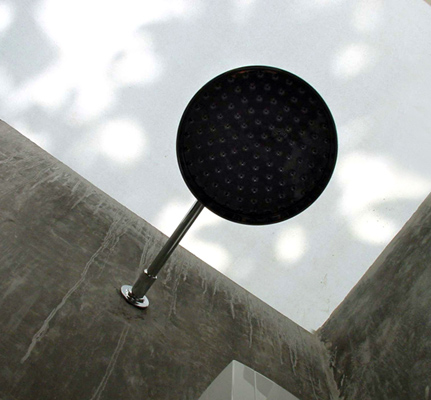 Finished in polished concrete and reclaimed timber, each unit is 53 sqm including private terrace and semi-open air bathroom with huge rain shower head.