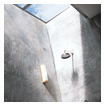At 63 sqm, the larger size room with its polished concrete finish is accented with floor length glass panes and sliding glass doors on two walls. The translucent bathroom ceiling welcomes sunlight into this spacious area.